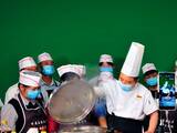 市场里,屏幕滚动显示各类菜品的市场指导价格。