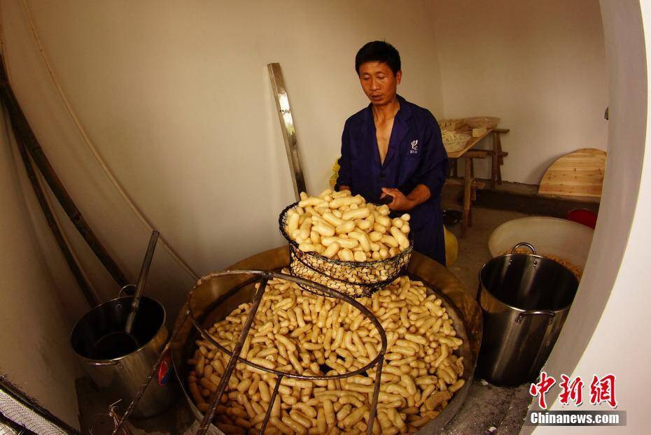余传太、余传习兄弟二人每天制作约70斤豆参,每斤售价20元。 王昊阳 摄