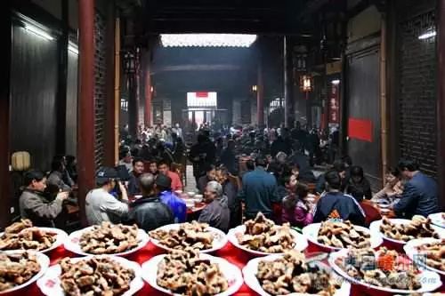 以八人一桌为餐席,用四只盘子,八只碗砵为餐器,设计菜品款待乡亲,以求上任,四方得利,四季安康,八面春风。