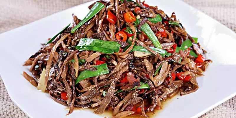 八百里井冈是竹的海洋,竹笋制成笋干后,再将煮过的笋用炭火焙烤干。以其烧肉,肉味甘美,而笋味绵长。